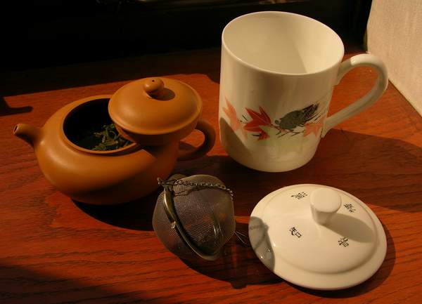 用白磁杯和不銹鋼茶網怕影響水味....