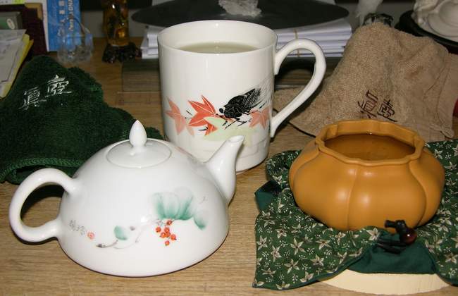 >607兄﹐那個笨法兒好使嗎﹐就是太麻煩了。進來“老道”一日漲過一日﹐十萬零五十了還不下來﹐真讓人煩悶﹐所以和綠茶也就是直接用青瓷杯子啦﹗