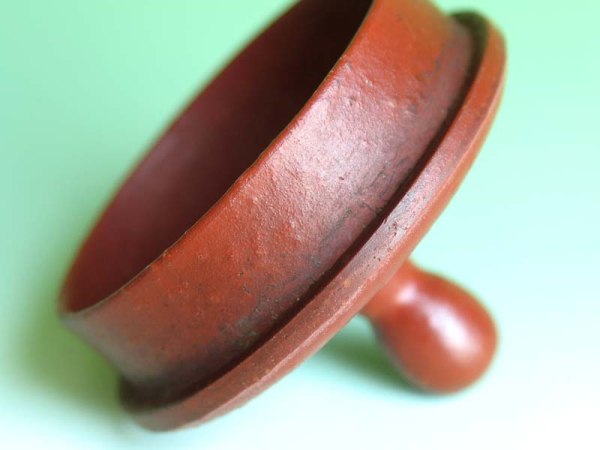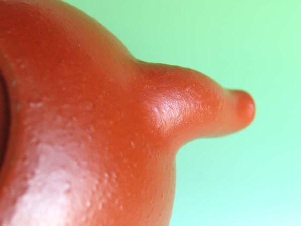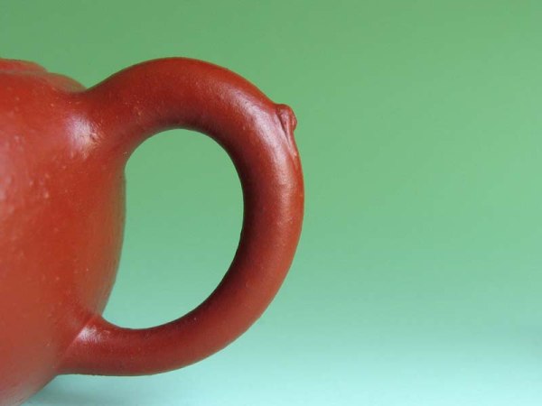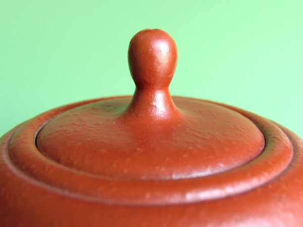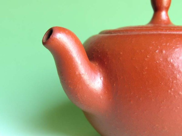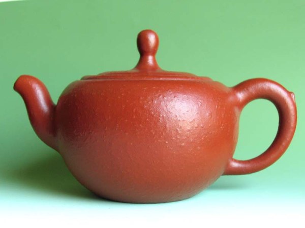 前些時我請麻瓜兄幫我選幾把他自任為難得的壺,結果寄來了高峰的子畦梨皮朱砂瑞方壺。粗曠的顆粒,融在濃密的朱泥裏,如同朱泥巧克力般溫馨。高頸的壺鈕,顯出羈傲不群的風骨。圓厚的壺把,握著令人安心。