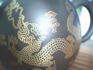 壺已向朋友借來,用網路攝像頭拍了幾張,這是龍壺.