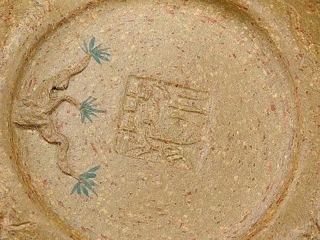 方小龍手製•金獎名作~蒼松供春壺(壺底特寫)