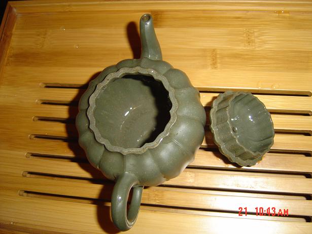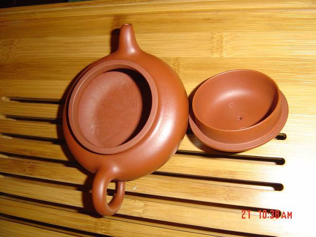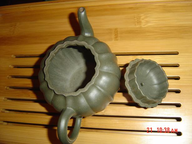 勞您費心找帖,原是這張圖,..應該是照片的問題,一來我照相技術差,二來拍照時,壺內還是濕的,以致產生這樣的錯覺,這壺 應該是沒有茶垢的, 不過..我的觀察是..大黃袍系列泥料的壺, 泡茶後的清洗相當重要.尤其壺內壁的修括痕,最容易卡垢.