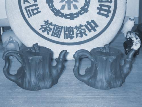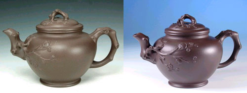 - 一樓的壺和十一樓的壺色澤紋理明顯不同(吳兄有勞你將二圖併在一起,如能縮成同一比例更好)