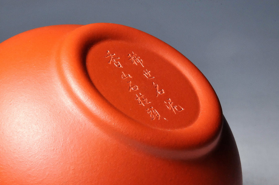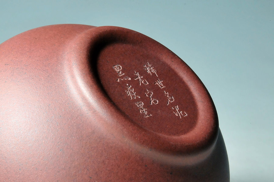 整夜難眠...,既然要再生產「圓之月茶碗」,就必須搞些新鮮有味道的效果才行,到了接近天亮,老麻瓜靈光一現,就來個小改款,搞個金石味充足的「古農真壺」圓章,章款就落在碗內底,讓茶湯來泡養凹凸有致的印章,既美觀又有泡養成就感,至於碗外底的落款嘛...,就請高手鐫刻「稀世名泥」,及「泥名」,這樣收藏玩賞起來就更有趣了!