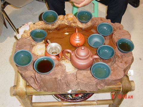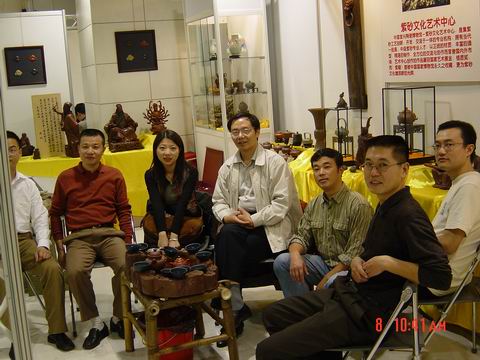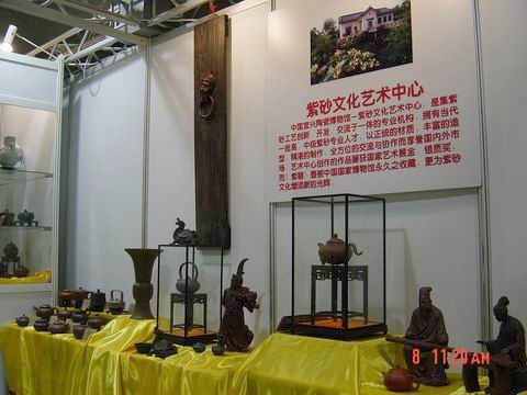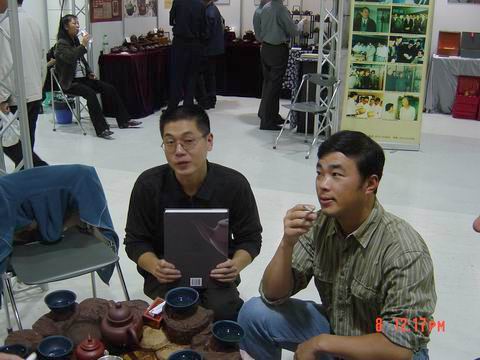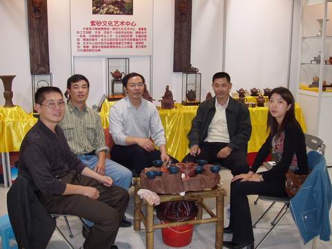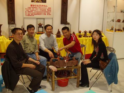 由於是新兵且隔岸求壺,對很多真壺的泥料沒有感覺,容積概念也沒有,故一廳到真壺首次出山就決定去打探一番。一路順風,衝到展廳(這次有很多紫砂展位),見過韓所長和諸位作家後,馬上撲向櫥窗開始欣賞心儀已久的真壺,大皇袍` 曠逸` 紫炻葵仿古` 。。。 。。。真是件件精彩個個出衆(養眼啊!),體會到了什麽是愛不釋手。之後又看了一下其他的展位,感嘆真壺與眾不同的泥料和作工!!!真壺會員真是有福啊!!!看完後開始享受“奢侈的茶宴”,探聽諸位大將的攻打方向,聊完後馬上感覺眾會員又要開始廝殺了(新的方~筋器)!時間過得真快,與韓所長等飽餐戰飯後就依依不舎地往回趕了,看來過幾天要嚐嚐餘大的排骨面了!贅言了太多,最後謝謝李小姐的關照和信任。