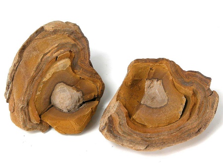 2.這個核心小球再敲開時,會有一顆更小且不同顏色的石黃心,但有時會沒有。