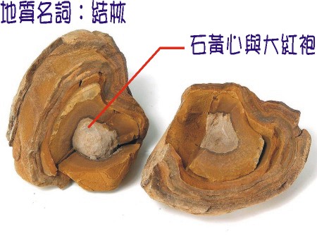 核心小球的殼(或整顆去練)是大紅袍,裡頭的更小球就是石黃心的原料。
