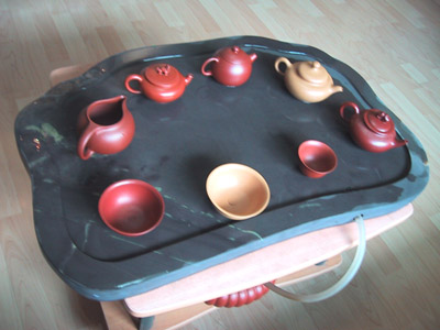 赤鱔 圓欣壺 + 二代大皇袍 茶碗 + 端石茶盤