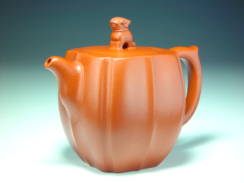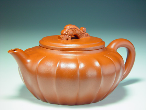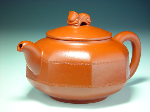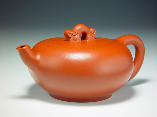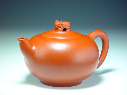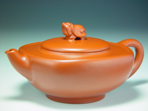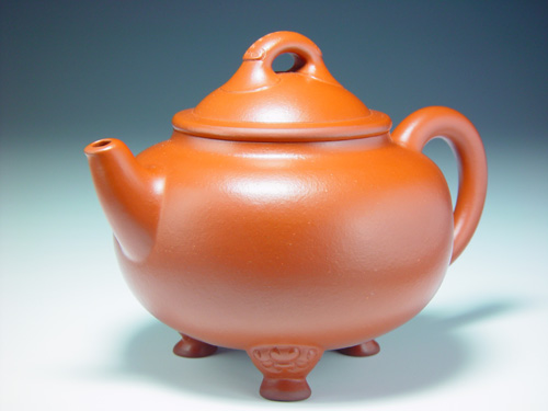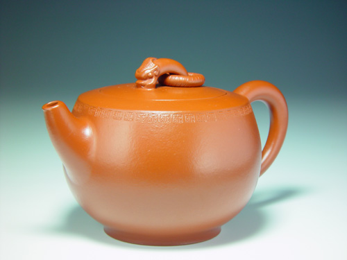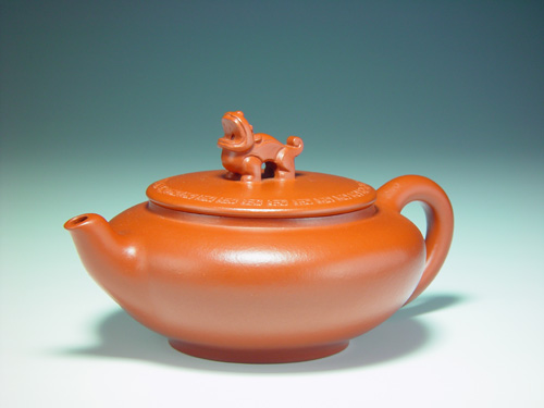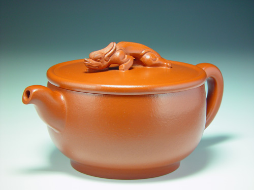 這是第一把購入的海棠紅, 當時沒有收藏龍生九子的念頭. 這把已泡養多次, 壺色已轉為橘中透紅.