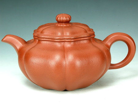這次的紫砂新品, 真是精品中的精品, 不但有海棠紅的龍生九子系列( 剛貼出沒多久, 圖片就拉下了 ), 還有睽違已久的紫碧壺, 以及筋紋器大師 -- 吳貞裕手製•葵仿古壺。我認為這把葵仿古壺, 它的線條及整把壺的比例, 弧度, 完美的展現了力與美的感覺, 配上君德桔皮朱泥色調,使整壺自然地散發出美麗而迷人的氣質,實在令人難以抗拒。