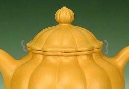 427兄,不錯,這蓮子壺不是全是二代,情形恰好相反;壺蓋是大皇袍,壺身卻是二代大皇袍!二代大皇袍包漿甚快,且泥色黃中略有點偏紅,與壺蓋\的黃色有顯著的對比,或可一看泥料小典故中的二代大皇袍其中的照片,就是蓮子壺身的大特寫。
