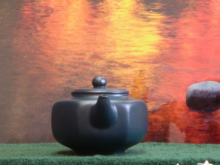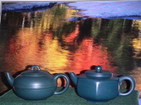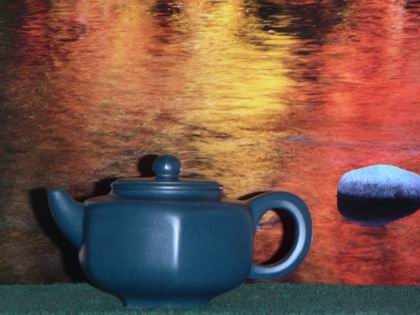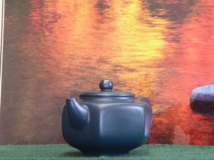 此壺色湛藍,水色佳,若絲綢絨布,似湛藍海水,細緻堅 潤,質若無骨,