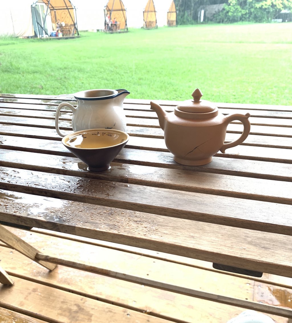 赤鱔的金盅壺,小弟沒有跟上完美品,只有在一次NG大搶購中,獲得此壺(壺的兩側都有一裂縫,泡茶會滲漏),後來手癢想試試直接用熱水沖看看會不會裂,結果就是裂成6份(底一份,筒身五份),最後自己用金膳的方法回復。 這也好帶出門泡茶也不會心痛。