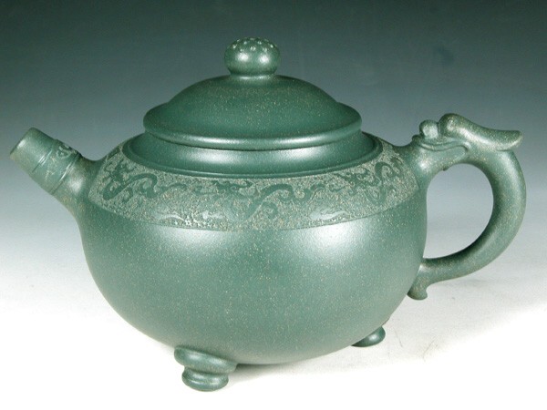 滴翠泥小弟有幸看過試片,看似軟軟地,但想不到做成青獅壺就變硬了,高峰好功力............................