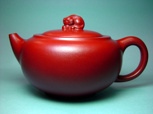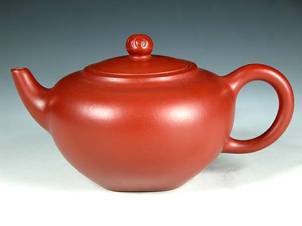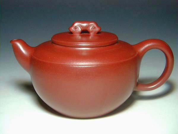 俞國良以傳爐壺最爲聞名,主要原因應是其所作四方傳爐壺獲1932年美國芝加哥博覽會優秀獎而致此,但其1937年用大紅泥所作傳爐壺,方中寓圓,棱角渾樸有致,底腹口規矩而挺拔有力,三彎嘴曲線優美自然,把方中帶圓,最是爲人讚歎不已的是其燒制火候恰到好處,色澤朱紅(與未回練大紅袍極象,因而宜興也有人稱大紅泥爲“大紅袍”),肌理滋潤,真是宜興朱泥器幾百年來的絕佳之品。然俞國良作品中精品也不泛其他品種,如真壺網上吳貞裕的六瓣梅花壺也曾是其精品,漢君、乳鼎也是其拿手之作,所遺作品還有掇球、仿鼓、魚化龍、百果等,有如此多品種也不差了,而且此人行蹤飄泊,所作多爲一人之力,在歷史能留幾把名作,實屬難得。當然我是最鍾愛其大紅泥絕品傳爐壺!!!韓老大所作駿乾壺工藝精良,四足絕對平整,這其中有不少現代工藝(如小電爐、精試泥片等)的功勞吧,許\成權的經驗教導,中央工藝美術學院培訓,在陳列管理工作中對名家的觀摩體會,當然還有韓老大的個人努力,這些種種條件才造就韓老大今天成就,如此不難體會老一裴壺藝家的艱辛。我曾說過,如若大彬真品與現代作品相比,至多算三流而》》》但大彬的歷史地位則絕非三流了。