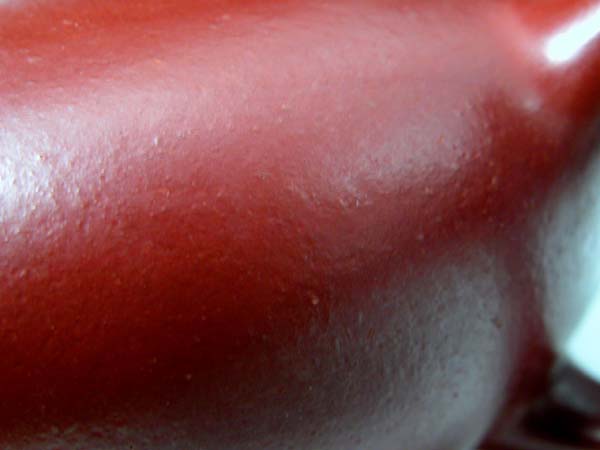 嫩蜜瑰紅泥料燒成的結晶度好象也很高,但反不如蜜瑰紅泥料燒成的結晶度高,我的蜜瑰紅茶碗所體現的結晶度特高,但好象絕無驚破的可能,只是在使用過程中其變形不斷加大,以致現在碗口的歪歪扭扭之象特別明顯,非常怪。不知其他壺友有否見過同樣情況?