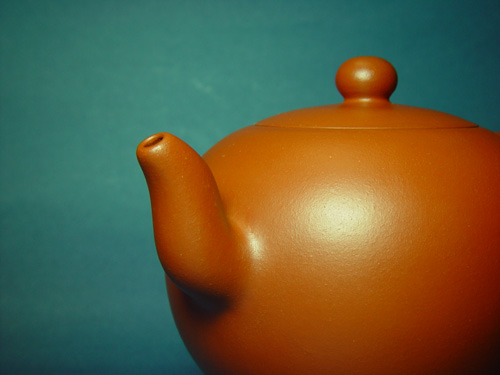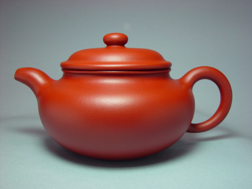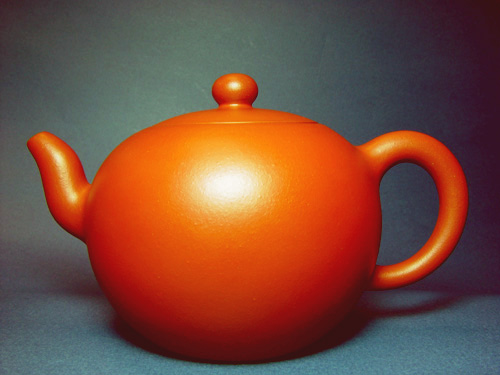 1、 照片上的大紅袍壺色澤偏黃,小生所照的漢鍾壺色澤紅潤,兩者有較大出入,不知是448兄照相時所用的燈光非日光(陽光、日光燈)所致?