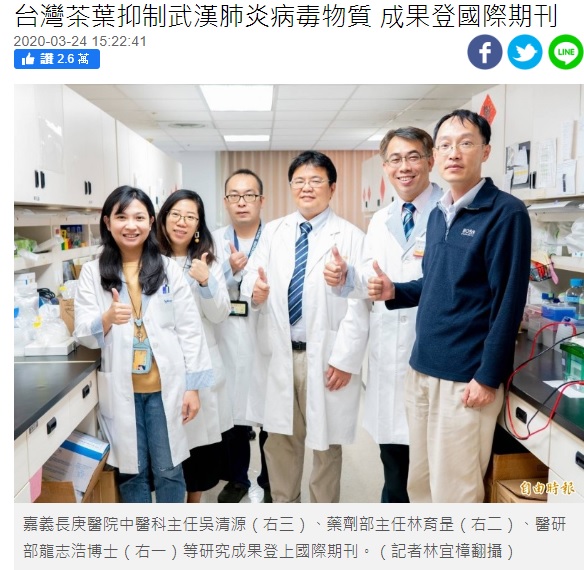 〔記者林宜樟/嘉義報導〕武漢肺炎疫情在世界各地爆發,嘉義長庚醫院中醫科主任吳清源研究團隊及醫學研究部博士龍志浩博士(論文第一作者)、藥劑部主任林育昰、健康資料加值中心主任楊曜旭主任、高雄長庚醫院醫師周煜倫等人,利用電腦高速運算模式,發現台灣本土茶葉中一種經由特殊萃取出來的「多酚羥基茶駢酚酮」結構的物質(Theaflavin),可能可以抑制新型冠狀病毒增生,研究結果獲國際SCI醫學期刊醫學病毒雜誌(Journal of medical virology)接受刊登。