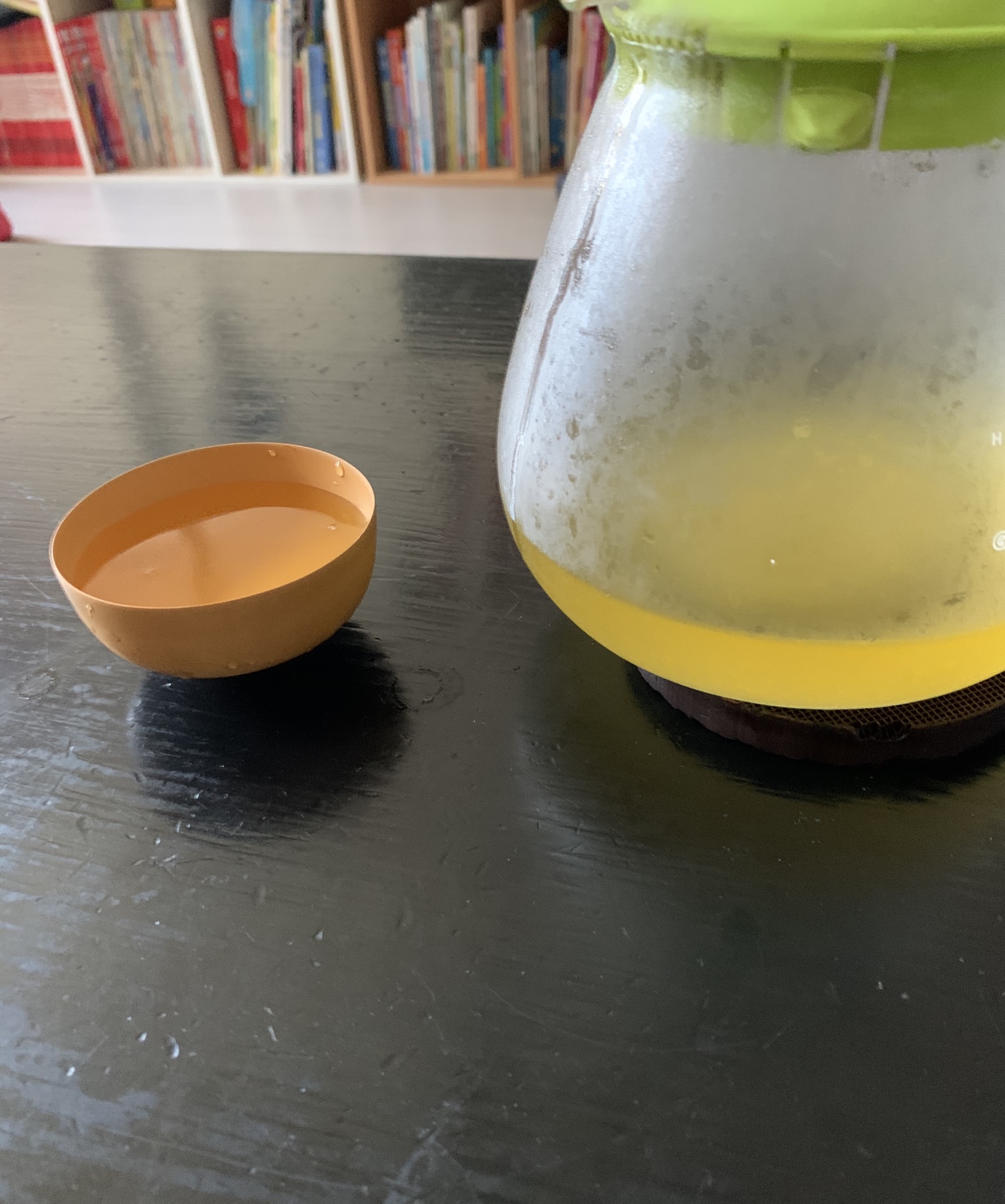 深濃黃色的茶湯很軟很柔.有嘗試泡過最便宜最薄利刮舌的佐餐香片.也能讓茶軟化好入口