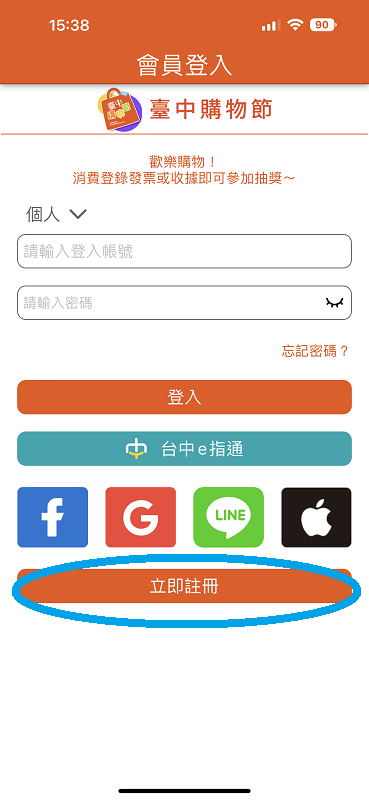 步驟2:打開APP,點擊下方的"立即註冊"並註冊您的個人資料。(若您以前曾經註冊過,則以先前註冊之手機號碼及密碼登入即可)
