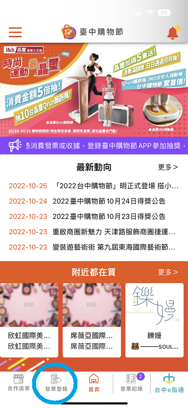 步驟3:註冊完畢後進入首頁,點擊左下方的"發票登錄"標籤。