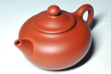 朱石皮原礦產於黃龍山系,乃石英砂礦層中的細扁夾層,因外觀堅硬呈雲片狀,原礦酷似“石皮”,成陶後近朱色,故今以“朱石皮”命名之!燒成後,週身滿佈金點蟻足細砂,繁不可數,水色溫潤具透度,質感界於朱泥系與紫泥系間,十分特殊,歷史上並未見此泥。沖茗養之“包漿”神速,開壺時間較短,親茶性高,任何茶葉皆能展現應有之水平,加之色澤“嬌而不媚、豔而不俗”,可謂老、生手之玩賞珍品!