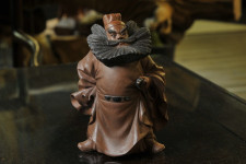 特註:宜興雕塑作品,作家於燒成後,會再進行最後的美容階段,某些作品會塗上黑色或其他顏色的釉水裝飾(局部點彩妝點),求畫龍點睛之效,以追求視覺上的最完美,並再次入窯「低溫燒成」;或傳統上宜興雕塑作家,會將燒成的作品「上蠟」,以求溫潤感,就因此故,請玩家們收藏宜興雕塑作品後,請勿用水刷洗,以免蠟或低溫釉水脫落,反而不美。