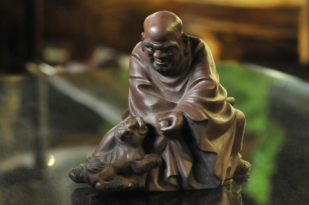 笑獅羅漢:羅弗多尊者,原為獵人,因學佛不再殺生,獅子來謝,故有此名。