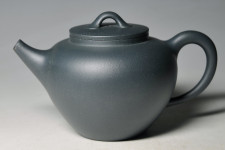 作者以乾淨挺落的點、線、面,襯托出如玉般柔潤光潔的美感,壺嘴與壺把呼應爽快而富動感,配上平整的蓋面穩住視覺的安定感,使作品的生命力躍然欲出!