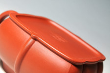 【嫩石黃心】收縮比50%以上,窯溫1010攝氏度,是宜興泥系中,排名屬一屬二的最高收縮比,為超低窯溫之朱泥系之一。