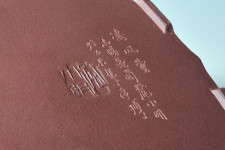 燒成後胚面微泛白霧之氣,乃高量鐵質蒸發後的特異現象,一經泡養或細心擦拭後,霧氣盡去,換來的是溫潤剔透的質感,與棕紅近紫的變幻色調,十分迷人而高貴。