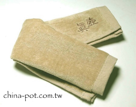 本養壺茶巾正面採高級的剪紗柔毛面,右下方繡上棕色【真壺】二字商標,四週車上輕駝色布邊,可耐長期使用而不致潰散;此正面的細柔剪紗面適合擦拭花貨,有不勾毛、不傷壺身的貼花之優點,及適宜使用壺經沖養一段時日後的拋光,經此細柔剪紗面輕拭後,壺身極易產生晶瑩剔透的泥料質感,美不勝收!