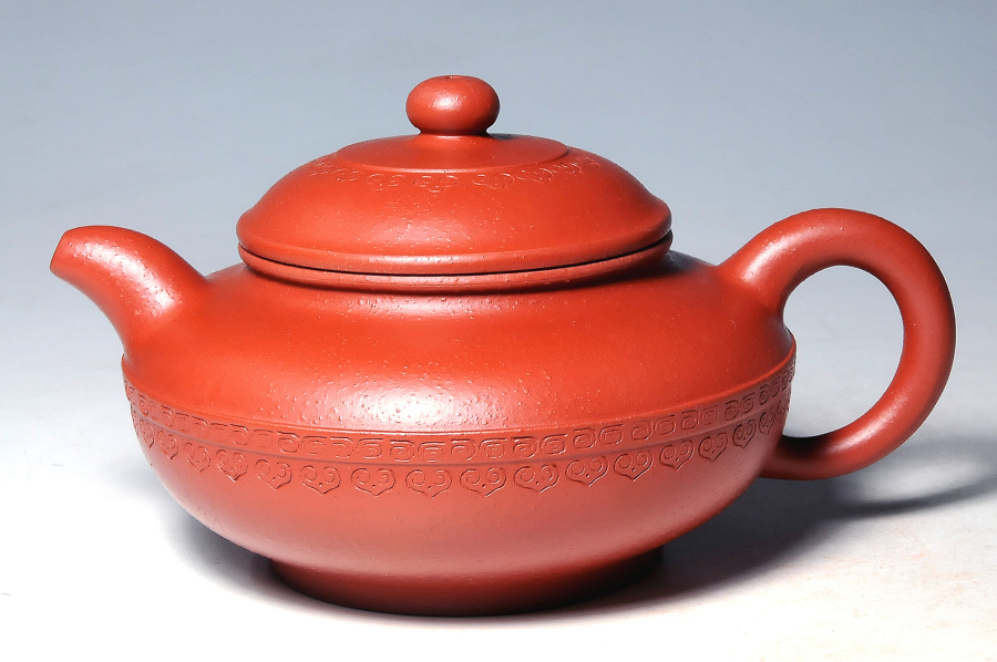 本作品“圓如意壺”特以茶湯品質絕佳,現已正式稍更改細碼砂的嫩“繁星朱砂”為胚製作,以敦樸福泰的主題精神,雕琢出安祥拙樸的完美氣息!