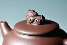 燒成後胚面微泛白霧之氣,乃高量鐵質蒸發後的特異現象,一經泡養或細心擦拭後,霧氣盡去,換來的是溫潤剔透的質感,與棕紅近紫的變幻色調,十分迷人而高貴。