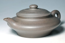 本作品為全手工成型之作,採超高難度打身筒的技法,拍出壺腹中線“扁而不蹋”的效果,實屬十分不易,蓋鈕下之雙圈細巧精美而不纖稚,大塊面的大膽身胚,及漂亮的過渡,運用泥性的展延特質,堆砌成饒有情趣的玩賞價值,採用“嫩茗嶺變色泥”為胚,更使作品老味十足,望之讓人油然發思古之幽情,使人難以釋手矣…!