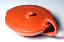 原礦色若向日葵花瓣色,充滿陽光燦爛的青春氣息;燒成後胎色赤紅略現橙色,胎表似覆一層乳白的光澤,使用日久漸現桃紅質與色感,美不勝收,令人讚嘆造物之神奇。