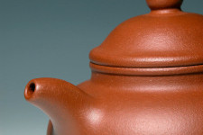 今日古陶研究所再度收集完成之此泥原礦後,為讓此泥的茶湯品質更為提升至完美之境,故除了選礦更加慎重嚴謹的提升外,再依練泥技術成熟度的提高下,略微調整了砂漿比率與練泥時的程序與步驟,使之前“海棠紅”之茶湯略欠完美之處一下子修正了過來,【梨皮海棠紅】除了逼熱性的提升外,茶湯更加開朗明快,並略帶雄渾的餘勢...,使茶湯更形完美勻稱,可圈可點!