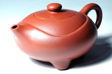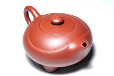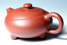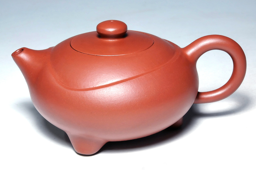 本作品以圓潤的身筒為主題,並以圓融的三足襯托出身筒,短小圓潤而柔暢的壺嘴、壺鈕及壺把曲線與弧度,相得益彰的呼應出作品的完美形象,得壺如此,即可速速燒水沖茶去也!