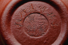 【朱瑩】於燒成後,胎表呈現出深沉而略泛紫光的朱紅色(乃有深度的暗紅色,真是紅豔已極,早已紅得發紫矣...),並有富含岩片狀的特有胎表,以手觸撫胎表似有Q軟之感(有此Q軟觸感者,必屬奇泥級名泥也!),胎表質感晶瑩剔透(泥質胎表的穿透感絕佳),真乃視覺效果一流的稀世美泥也...。