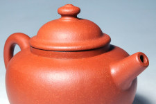 今日古陶研究所再度收集完成之此泥原礦後,為讓此泥的茶湯品質更為提升至完美之境,故除了選礦更加慎重嚴謹的提升外,再依練泥技術成熟度的提高下,略微調整了砂漿比率與練泥時的程序與步驟,使之前“海棠紅”之茶湯略欠完美之處一下子修正了過來,【梨皮海棠紅】除了逼熱性的提升外,茶湯更加開朗明快,並略帶雄渾的餘勢...,使茶湯更形完美勻稱,可圈可點!