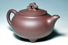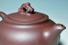 飽滿圓潤而精美的身影…,富生命力的動感…,及雕琢為美的壺鈕雕塑…,結合出迷人的景色…;別具特色…;有別於韓洪波所長的是…,壺嘴洞口周遭的特有潤飾手法,過渡與轉折之神妙讓人讚嘆,壺把隱現的小角度過渡手法,更是讓行家們大讚秀麗無雙也!