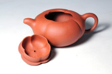輕啟壺蓋,【海棠壺】以四瓣筋紋為形造出壺口與蓋牆,四瓣形壺鈕座配上彎出的壺鈕的子,就如花蒂般,自然而恰如其份的佈置在壺身之上,微彎而短的可愛壺嘴,配上前後呼應的流暢壺把,將作品的生命力妝點得豐富無比,身筒往下至壺底,貼上一片四瓣的海棠為底,十分特殊而合理,也為造壺三大要素~【理、意、趣】做了最佳的詮釋!