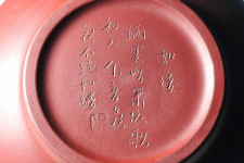 為增典藏價值,故吳江健老師特於此【如縷壺t】的壺底,運用蘇軾《赤壁賦》中之典故,親手鐫刻《如縷‧酒罷吹簫依歌和之,餘音裊裊不絕如縷》的詩文,藉以表達【如縷壺t】之創作理念,並於詩句的左下方落一“吳“字小方章,頗具古風,亦為【壺因字貴,字隨壺傳】做了最佳的註解。