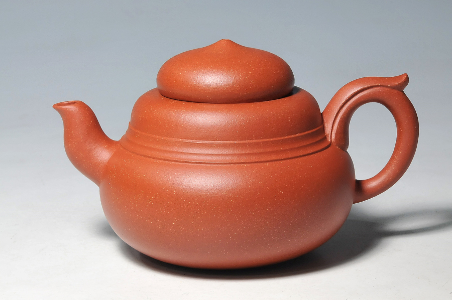 周偉君老師精采的將作品之線條與過渡,打造得凹凸有緻,變幻萬千…,充滿個人的藝術風采,很豐富、很迷人的表情…配上紅中泛金的華貴雍容色調,及萬人迷般的氣質茶湯,得此好壺,真是夫復何求矣!