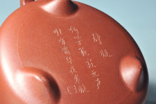 為增永世典藏價值,故吳江健老師特於此【靜凝壺】的壺底,親手鐫刻《靜凝‧何以萬籟寂無聲,唯有霜華夜寒凝》的詩文,藉以表達【靜凝壺】之創作理念,並於詩句的左下方落一“吳“字小方章,頗具古風,亦為【壺因字貴,字隨壺傳】做了最佳的註解。