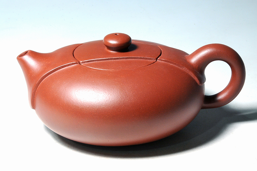 江健老師在作品的詮釋上,不畏艱難的製作出陶藝家“最懼的難造之型”,採用難纏至極的古農真壺稀世名泥~【藏瑰紅】為胚,由流基之下往上貼上一薄泥片,直至壺把間為止,以完全手工的捏塑,慢慢的雕琢出流線的現代風泥片子,使作品動靜皆宜,達到了《理、意、趣》的極高創作境界。