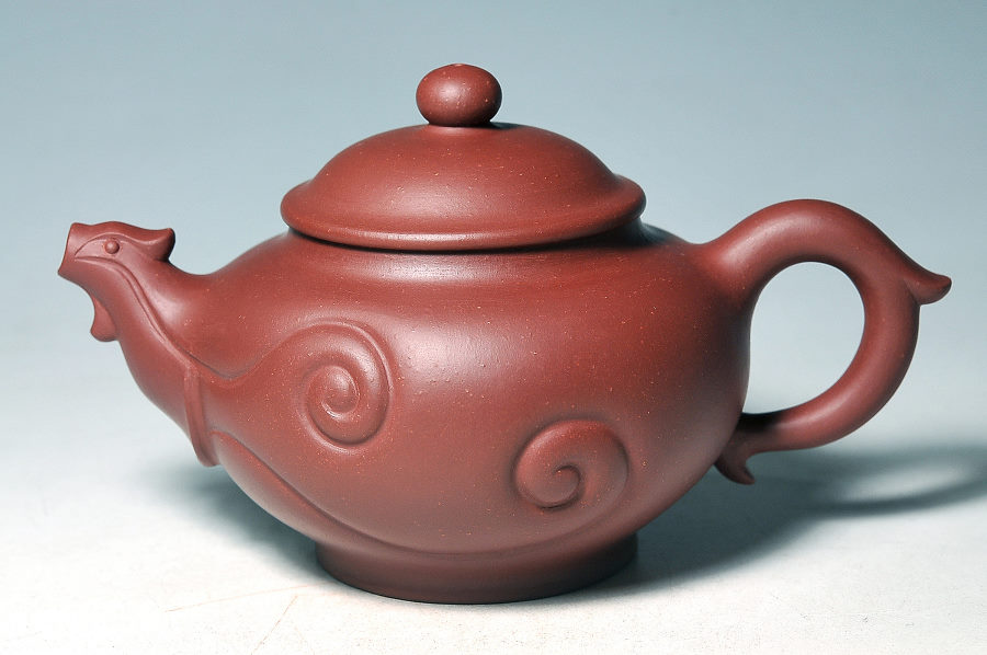 周偉君老師以筋紋器思維及手法,加上古老的傳說圖騰,搭配光貨的圓潤身筒,配上六君子中茶湯修飾性最強的~「灑金蜜瑰紅」,讓祥瑞壺s的美觀與實用性一舉拉到極高的層次。