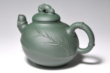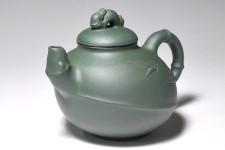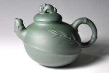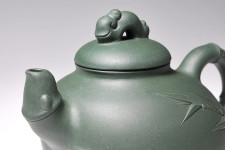 韓洪波所長採用【古農真壺稀世名泥~柳影】為胚,以「綠竹」的風韻神采為靈感,〝竹韻壺〞與〝柳影〞的交會,綠竹的韻味與綠色系的名泥巧妙搭配,無窮的詩情畫意,韻味幽雅而悠長…。