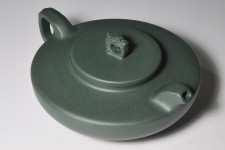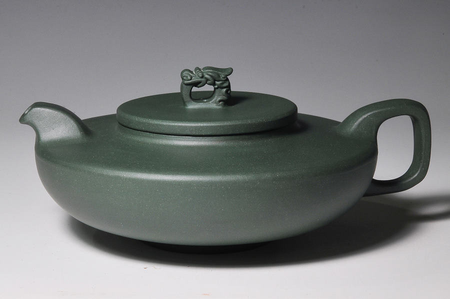 超大超寬平的壺肩面與蓋面,游著一艘寓意的龍舫圖騰,就如寬闊的太湖上頭,迎風招展著這「只有」一艘龍船!