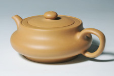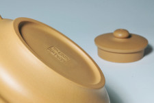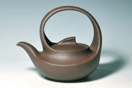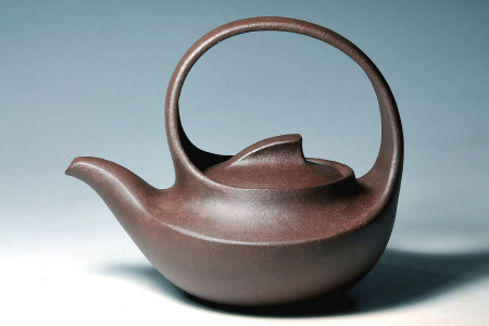 周偉君老師以圓潤、敦厚,而矮扁的身筒,很有技巧的抓出身筒頂著石柱,既強大又穩重、不失俊逸瀟灑的戲劇性張力,彰顯出「磉~柱墩」的迷人特色,配上如湧泉般的動感壺流,扁平而充滿美好彎折線條的壺把姿勢,順到壺底身筒基處的靈動收尾,及壺頸邊緣築起的小線圈,托起了微微隆起的蓋面,和美妙而不失分寸的圓鈕,打造出讓人喜愛的美好作品!